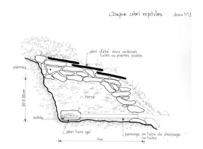 L’hibernaculum est un abri artificiel polyvalent utilisé durant l’hivernage ou comme abri régulier ou lieu de ponte le reste de l’année.