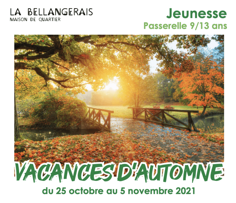Programme “Passerelle” 9/13 ans – Automne 2021 Le programme d’activités des vacances d’automne, pour les 9-13 ans est prêt !Les activités peuvent être pré-réservées en ligne à partir du mercredi